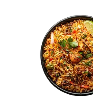 Flavor-packed basmati rice with tender lamb, slow-cooked in rich spices, saffron, and caramelized onions.